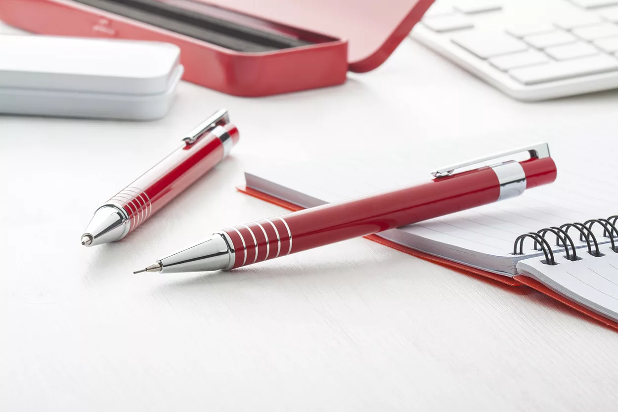 Set pix și creion mecanic în cutie din metal - Alucolor, Roșu